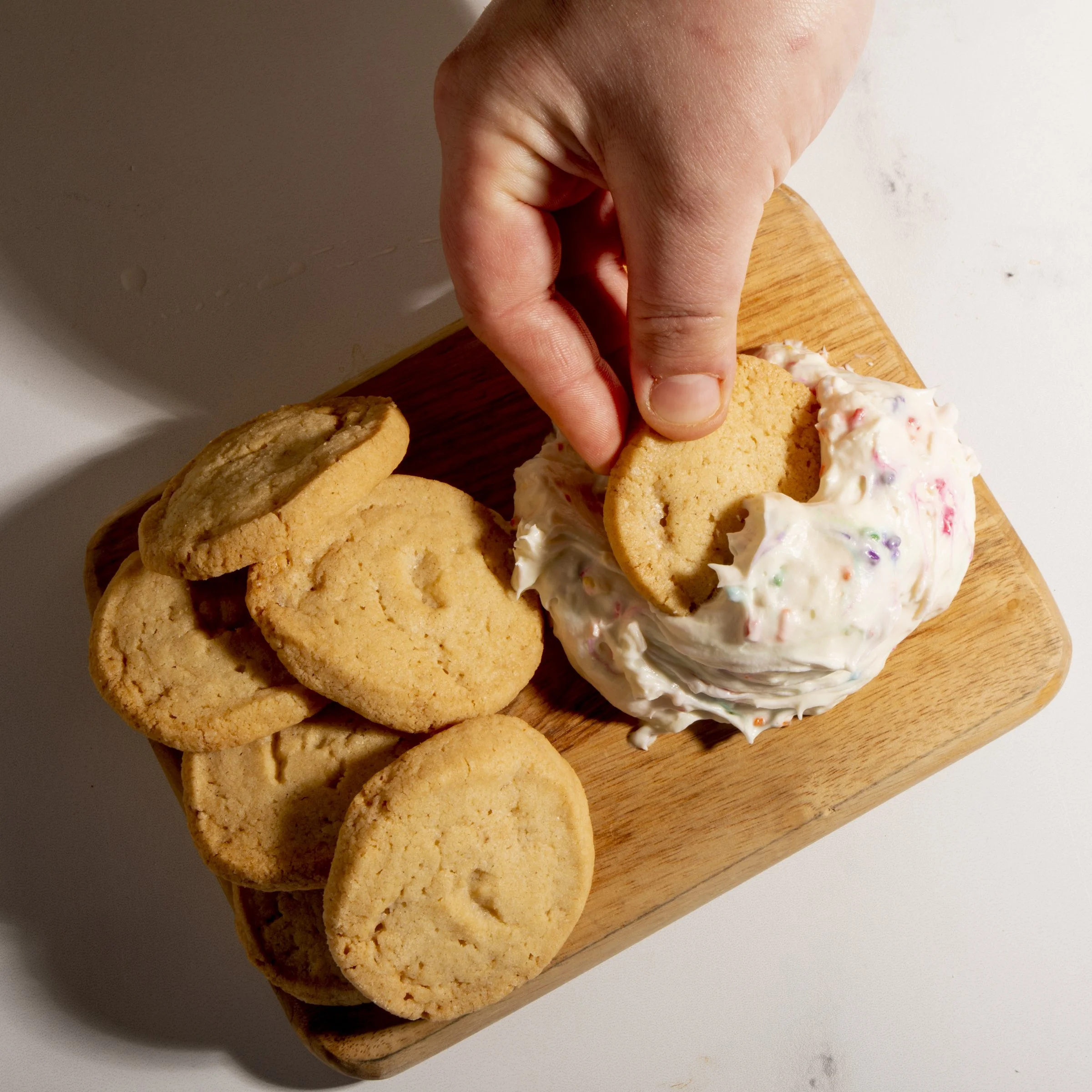 PREHEAT OVEN TO 350, REMOVE LID + PLACE DIP ON BAKING SHEET, BAKE FOR 10-15 MINS, OR UNTIL HOT